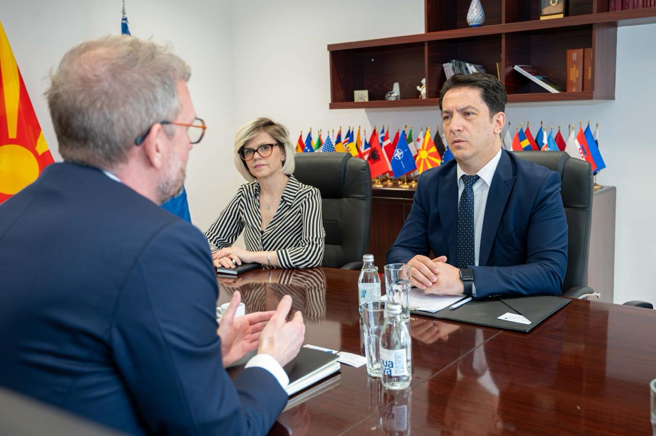 Првиот заменик на претседателот на Владата и министер за европски прашања, г. Беким Сали, оствари средба со претставникот на Европската инвестициска банка (ЕИБ) во Република Северна Македонија, г. Бјорн Габриел.